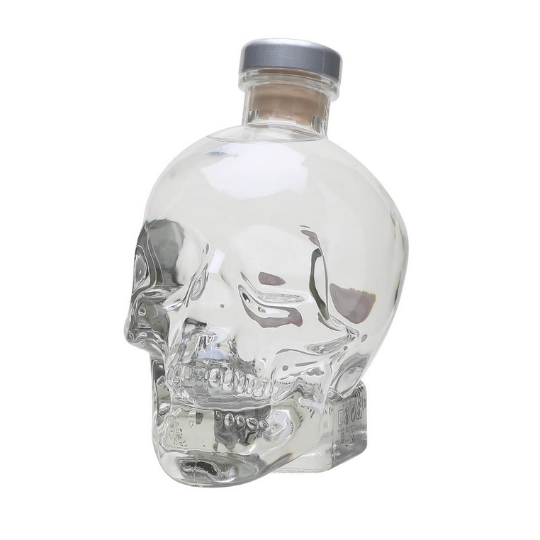 The iconic skull-shaped bottle is produced in Europe, where bits of crystal are melted into the glass to ensure absolute clarity.